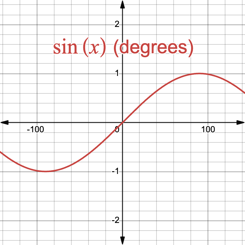 The graph of \(\sin(x)\), where \(x\) is in degrees. The slope at \(x = 0\) is about 0.01745.