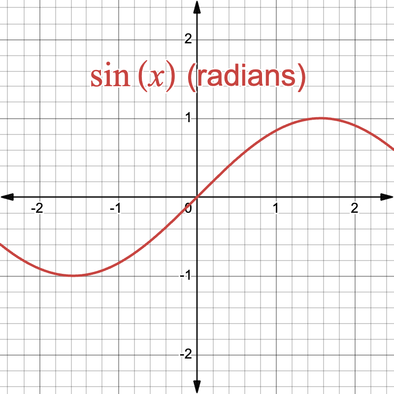The graph of \(\sin(x)\), where \(x\) is in radians. The slope at \(x = 0\) is 1.