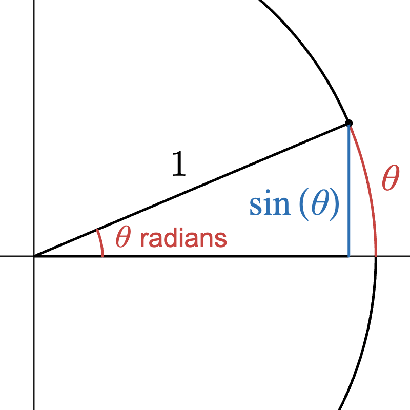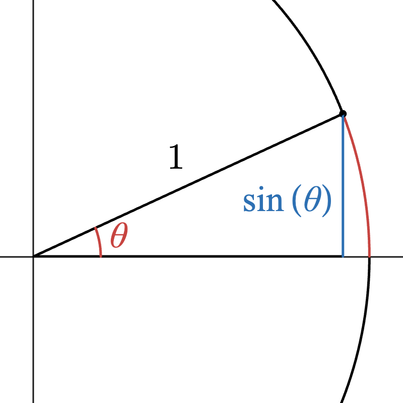 Wouldn’t it be nice if for small values of \(x\), \(\sin(x)\) was approximately equal to \(x\)? Let’s take a look at what sine represents to see if we can make this happen: